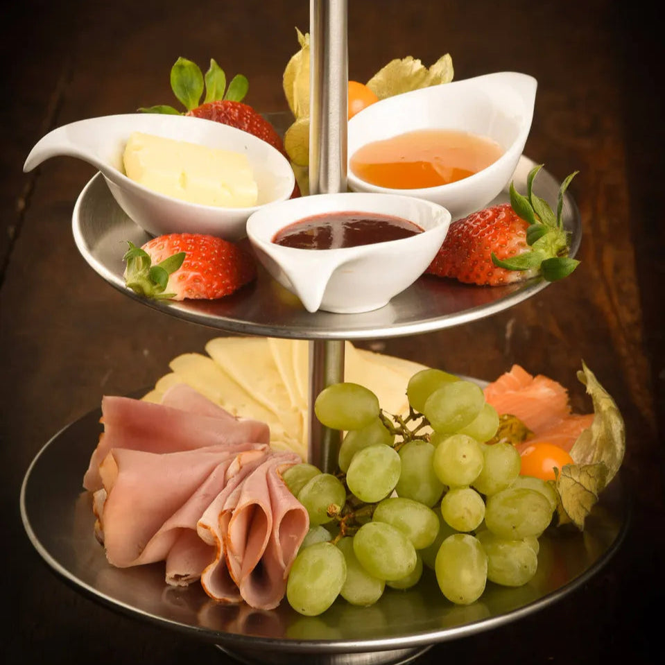 Auf einem Etagere servieren wir zum allein oder zu zweit genießen: