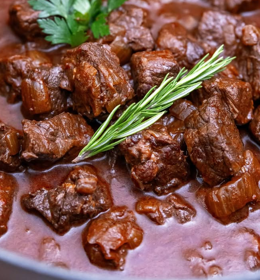 6. Das Gulasch mindestens 1,5 Stunden, am besten aber 2 Stunden, bei niedriger Hitze köcheln lassen.