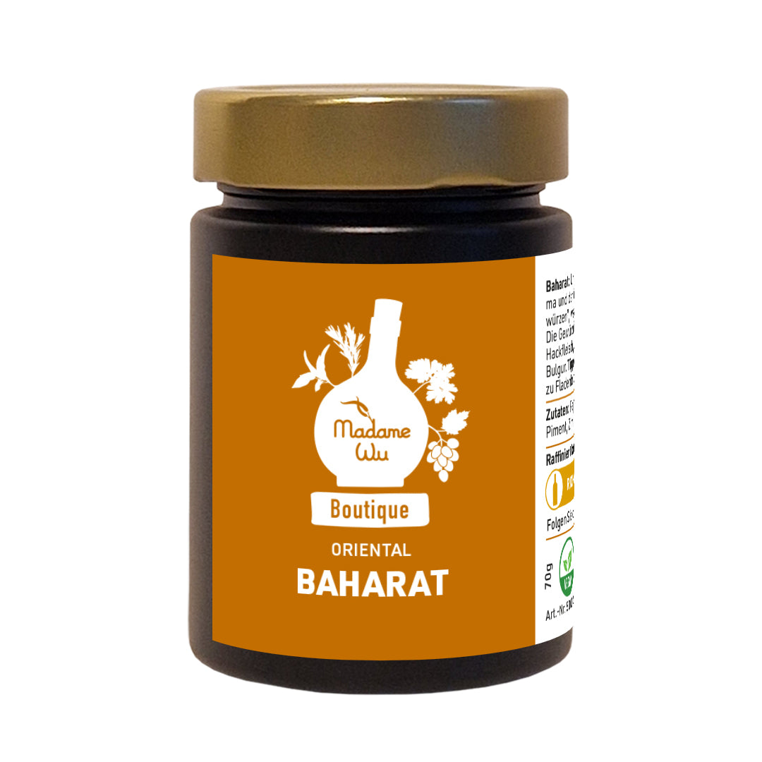 Unsere Baharat-Mischung betört mit einem kräftig würzigem Aroma und der Süße von Zimt und Muskat. Übersetzt bedeutet Baharat "Gewürz, würzen", was auf den hohen Stellenwert in der arabischen Küche hinweist. Die Gewürzmischung eignet sich besonders zum Würzen oder Marinieren von Hackfleisch, Lamm und Hühnchen, aber auch für Shakshuka. Couscous oder Bulgur. Unser Tip: Als Dip mit Joghurt oder Quark angerührt passt es hervorragend zu Fladenbrot und Gemüse. Zutaten: HGM: Paprika, Cumin, Meersalz, Coriander, Pfeffer, Schwarzkümmel, Piment, Zimt, Cardamom, Knoblauch, Nelken, Muskatnuss