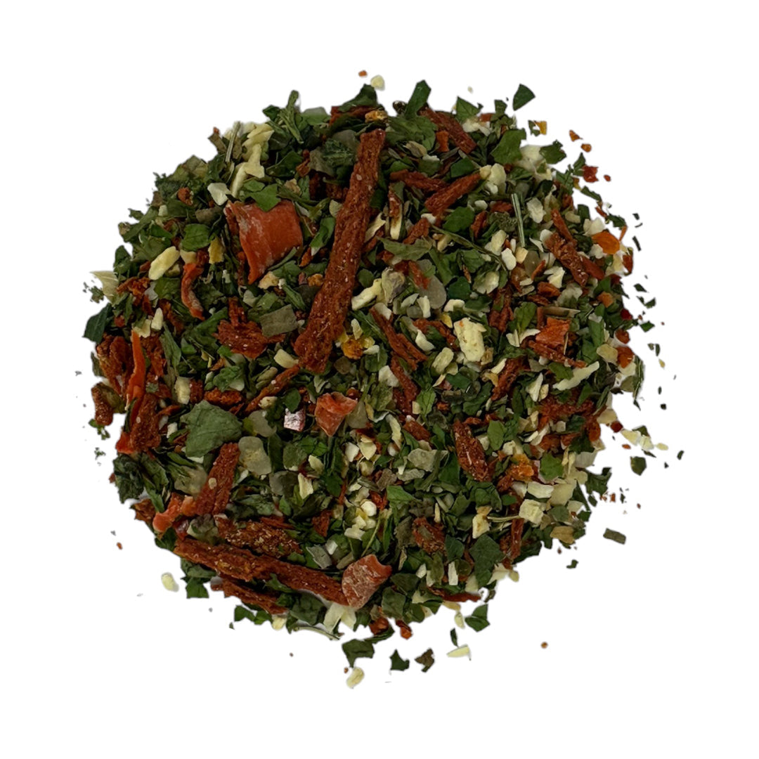Für etwas mehr Pepp auf dem Teller - unsere pikante Gewürzmischung mit Gemüse, Chili und Kräutern verleiht jeder Tomatensauce das ganz besondere Etwas. Unser Tipp: auch für Bolognese bestens geeignet! Zutaten: Gemüsemischung (Knoblauch, Tomaten, Zweibeln, Karotten), Chilis, Meersalz, Petersilie, Basilikum, Liebstöckel