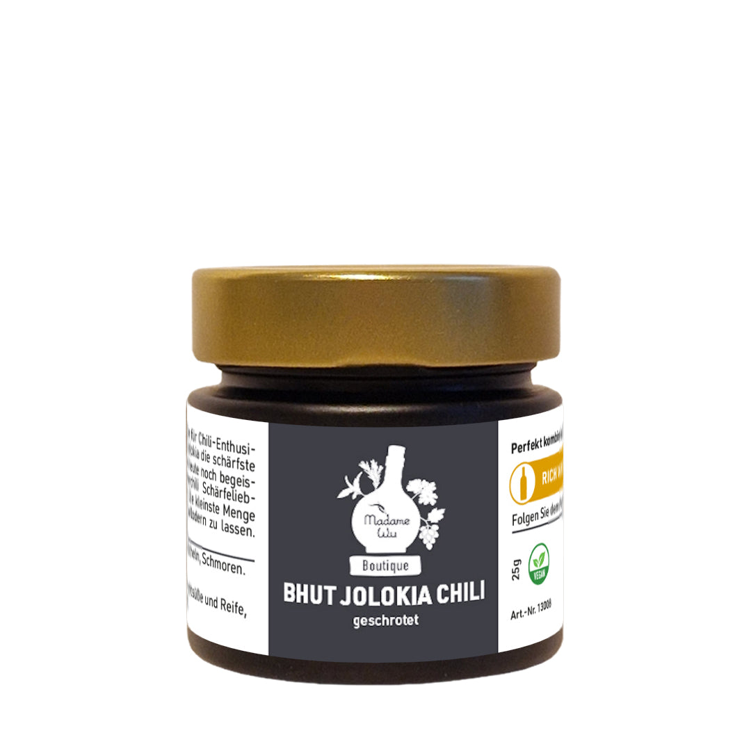 Das Must-have für Chili-Enthusiasten: Lange war die Bhut Jolokia die schärfste Schote der Welt – und auch heute noch begeistert die sogenannte Geisterchili Schärfeliebhaber rund um den Globus. Die kleinste Menge genügt, um jedes Gericht auflodern zu lassen. vorsichtig dosieren! Zutaten: Zum Braten, Köcheln, Schmoren