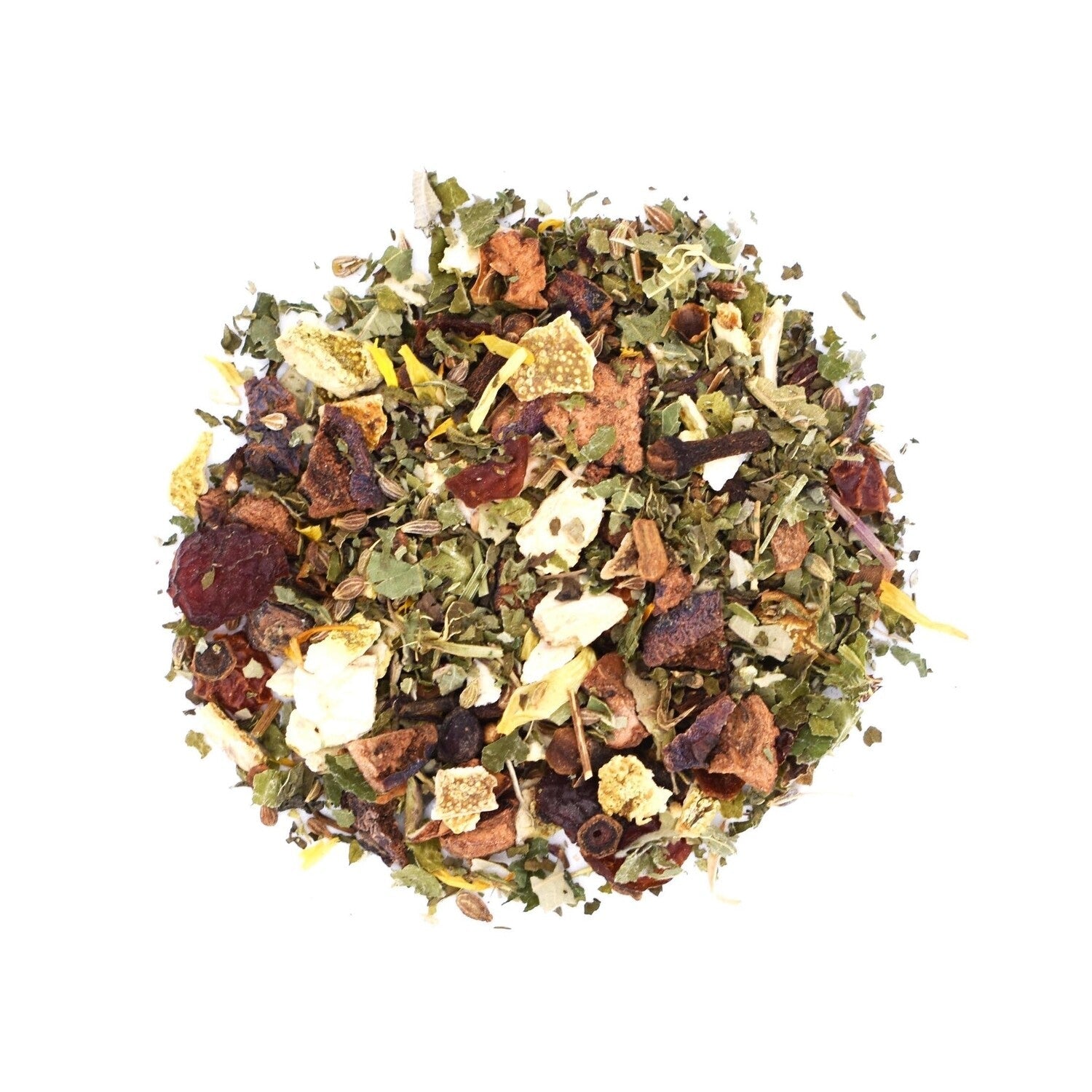 Naturbelassene ayurvedische Bio-Kräutermischung mit fruchtig-würzigem Geschmack. Zutaten: Orangenschalen*, Apfel, Anis*, Brombeerblätter*, Pfefferminze, Nelken*, Zimtrinde*, Hagebuttenschalen*, Ringelblumenblüten* / * aus kontrolliert biologischem Anbau