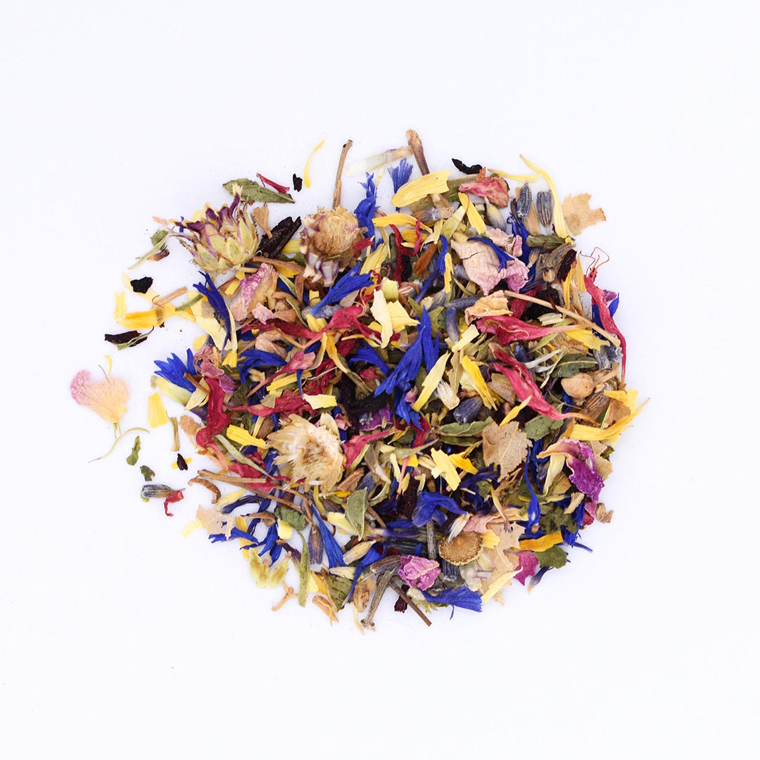 Diese farbenfrohe Mischung aus acht Blüten ergibt nicht nur einen Tee und Eistee mit wunderbar blumigem Aroma.
