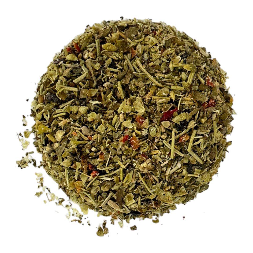 Dieses mediterrane Schmorr- und Grillgewürz bringt den Geschmack des sonnigen Südens direkt auf den Teller. Die Gewürzmischung passt bestes für alle Schmorr- und Grillgerichte – vor allem aber zu Lamm und dunklem Fleisch - und weckt damit Erinnerungen an den letzten Urlaub am Mittelmeer. Zutaten: Zwiebeln, Paprika, Kurkuma, Knoblauch, Pfeffer, Petersilie, Rapsöl
