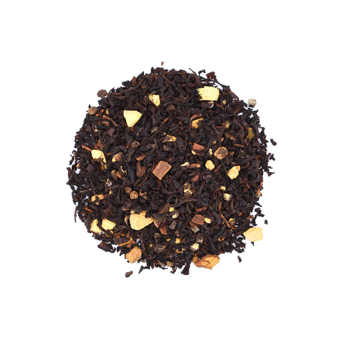 Aromatisierte Schwarzteemischung mit Gewürzen nach der besonderen Rezeptur aus einer alten indischen Überlieferung. Zutaten: schwarzer Tee, Pfeffer, Zimt, Kardamom, Ingwer, Nelken, Aroma.