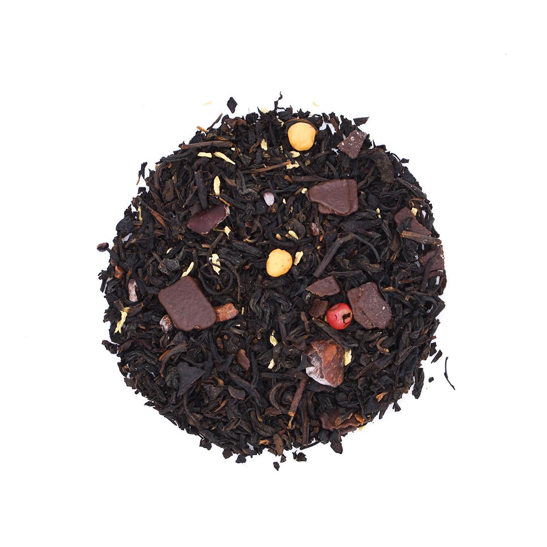 Chili & Kakao verbinden sich mit würzigen Schwarzteeblättern der indischen Region Ceylon zu einer einzigartigen Geschmackskomposition. Zutaten: schwarzer Tee, Kakao-/ Chili-/ weiße Schokostücke (Zucker, Kakaobutter, Milchpulver, Weizenmehl, Weizenstärke,