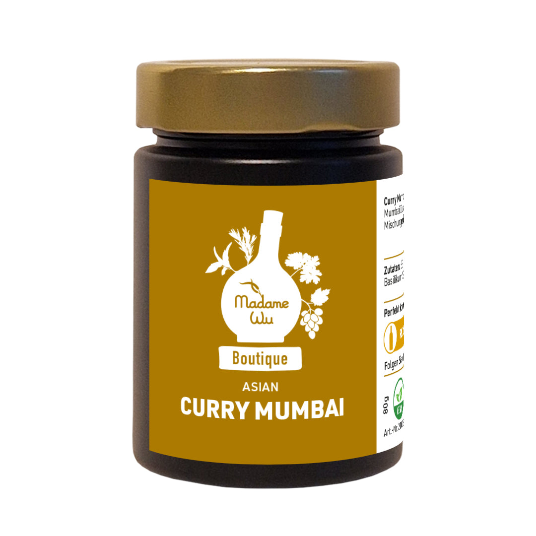 Das Auge isst ja bekanntlich mit, weshalb unser Mumbai Curry durch die gelber Färbung, die es Speisen verleiht, besonders ansprechend ist. Mit seiner milden Schärfe passt es ausgezeichnet zu Fleisch, Gemüse und Reis und verleiht einen würzigen Geschmack. Zutaten: SENFSAAT, Kurkuma, Koriander, Dill, Ingwer, Salz, Bockshornklee, Basilikum, SELLERIE, Kümmel, Chili, Knoblauch