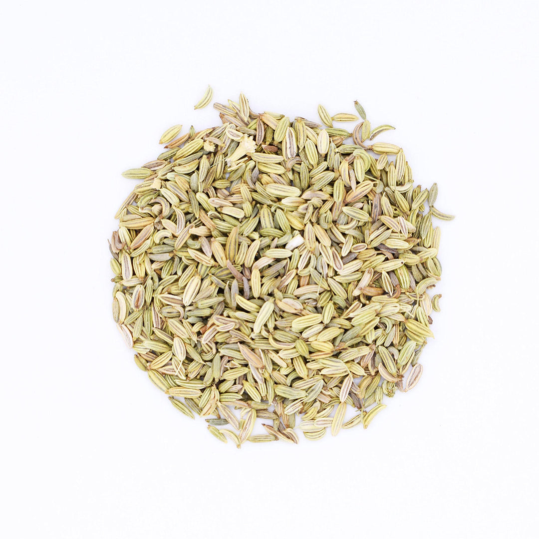 Fenchelsamen vor der Teezubereitung mit dem Mörser zerkleinern.