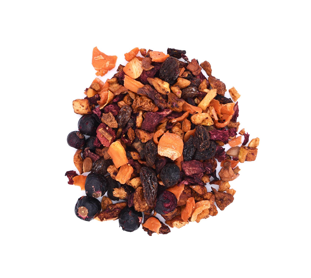 Eine kunterbunte Schar von leckeren Früchten und köstlichen Beeren befindet sich in diesem Tee. Zutaten: Apfelstücke, Weinbeeren, Karottenstücke, Rote Beetestücke, Himbeeren, schwarze Johannisbeeren, Erdbeerstücke,