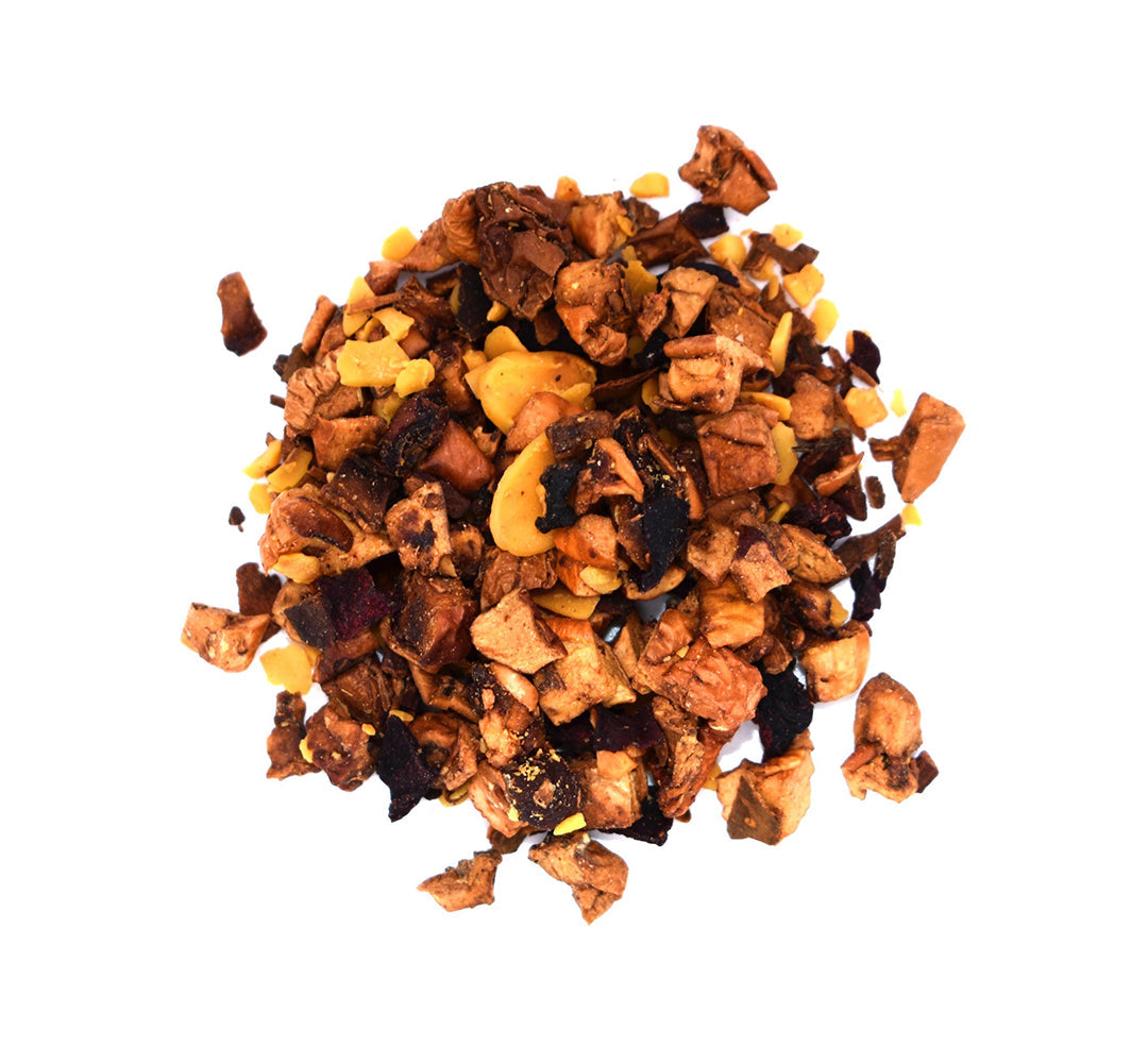 Verlockend süße, in Karamell gewendete und gerösteten Mandeln bestimmen das Geschmackserlebnis. Zutaten: Apfelstücke, gehobelte und gehackte Mandeln, Zimtstücke, Rote Beete Stücke, Aroma