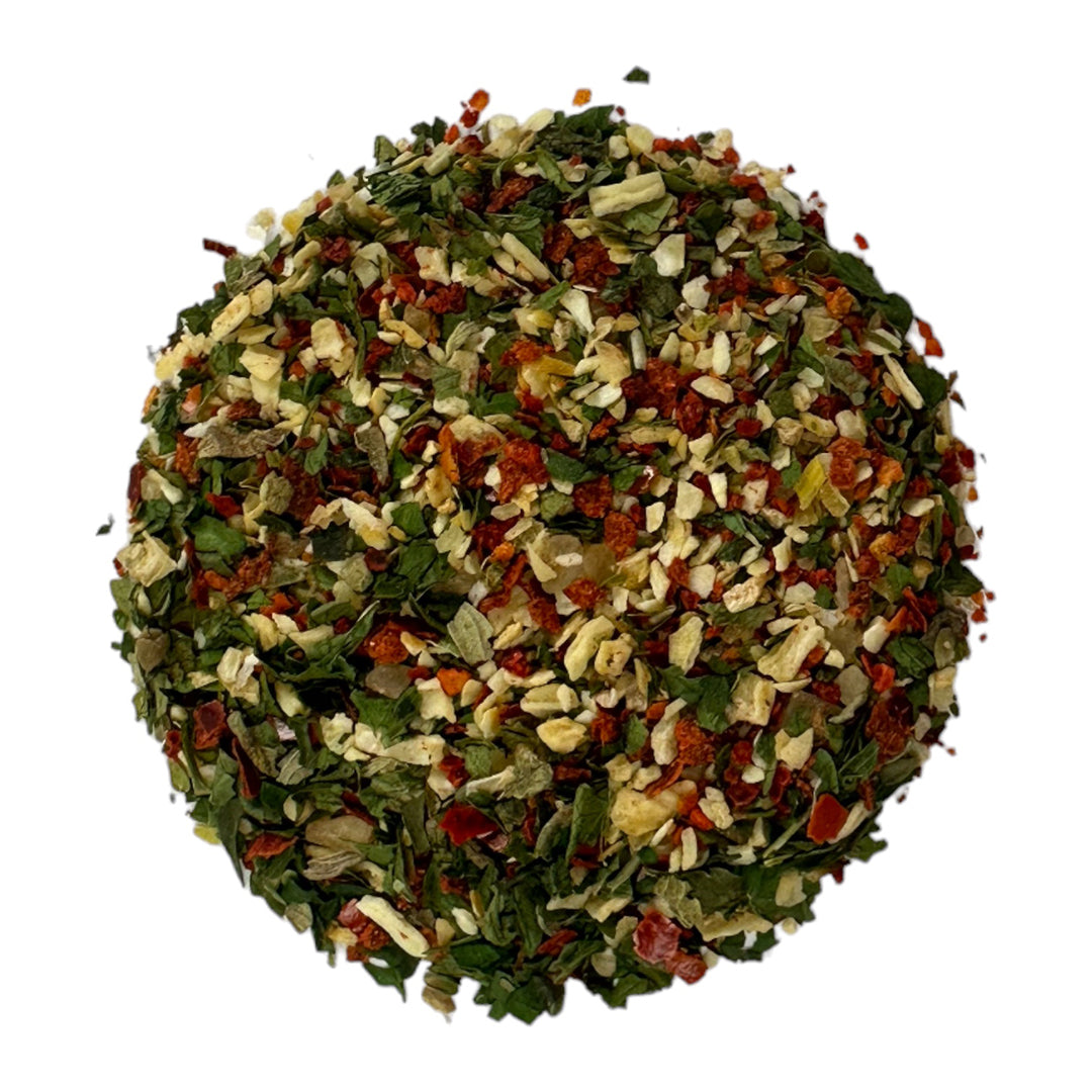 Unkompliziert und einfach - diese mediterrane Gewürzmischung macht aus Nudeln und Olivenöl perfekte Pasta Aglio e Olio wie vom Lieblingsitaliener. Darüber hinaus eignet sie sich auch perfekt für Bruschetta, Ofengemüse, Dips und zum Einlegen von Schafskäse und bringt somit mediterranes Flair in jede Küche. Zutaten: Zwiebeln, Knoblauch, Paprika, Meersalz, Petersilie, Chili, Oregano
