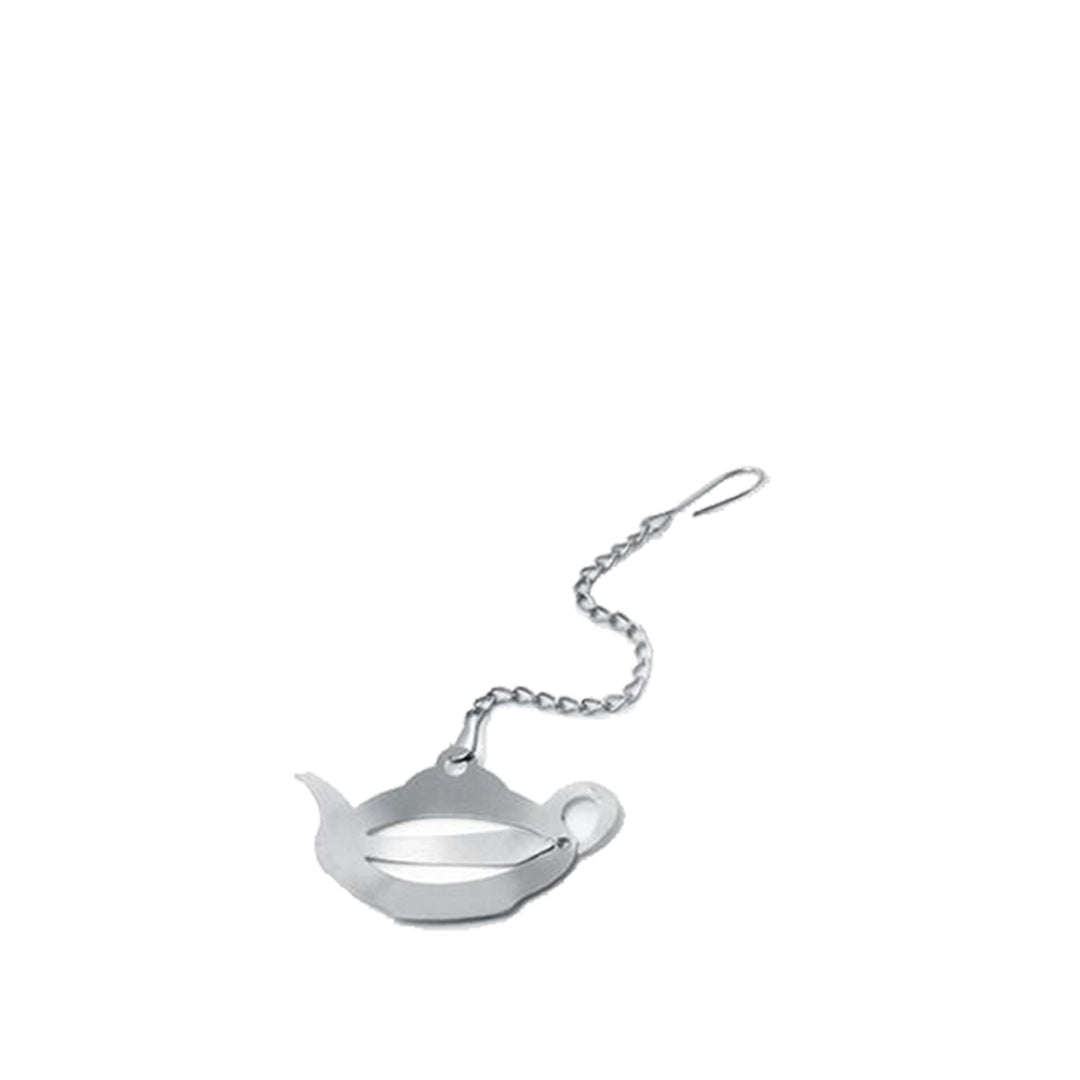 Spange im design "Teekanne" zum Befestigen und Verschließen von individuellen Teebeuteln.